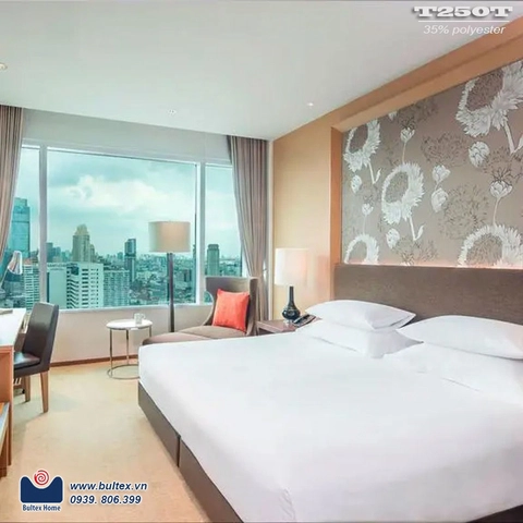 Bộ chăn ga gối khách sạn T250 trắng trơn 65% cotton / 35% polyester-T250T